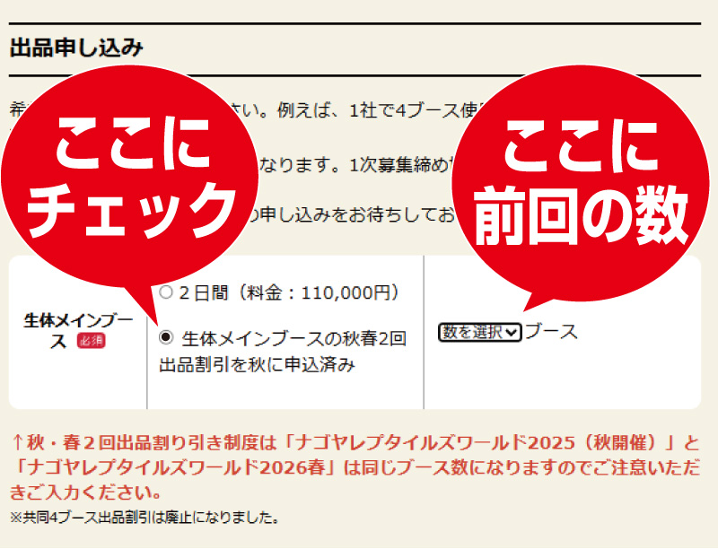 2025年秋に2回出品割引制度をお申し込みいただいた方も、2026年春のイベントへのお申し込みが必要となります。